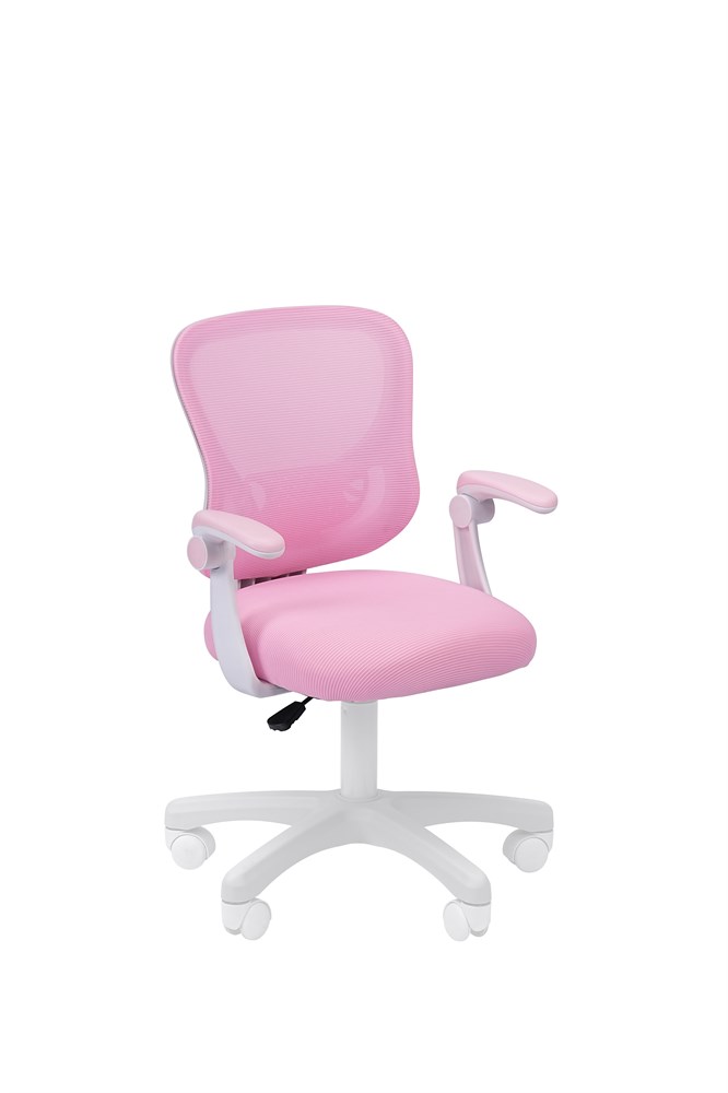 Сетчатая спинка и мягкое сиденье обеспечивают удобную посадку. Откидные подлокотники создают дополнительный комфорт и экономят пространство – когда кресло не используется, его можно полностью закатить под стол. А регулировка высоты сиденья адаптирует детское кресло под рост ребенка.