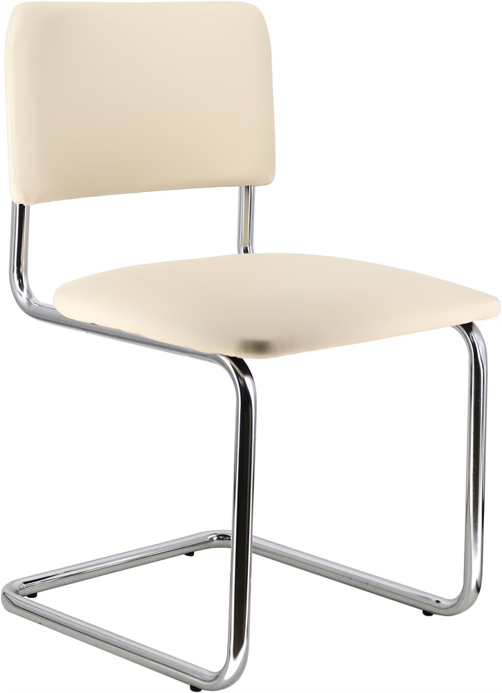 Кресло на хромированных полозьях обладает высокой устойчивостью и выдерживает нагрузку до 120 кг, сохраняя стабильность при ежедневном использовании.