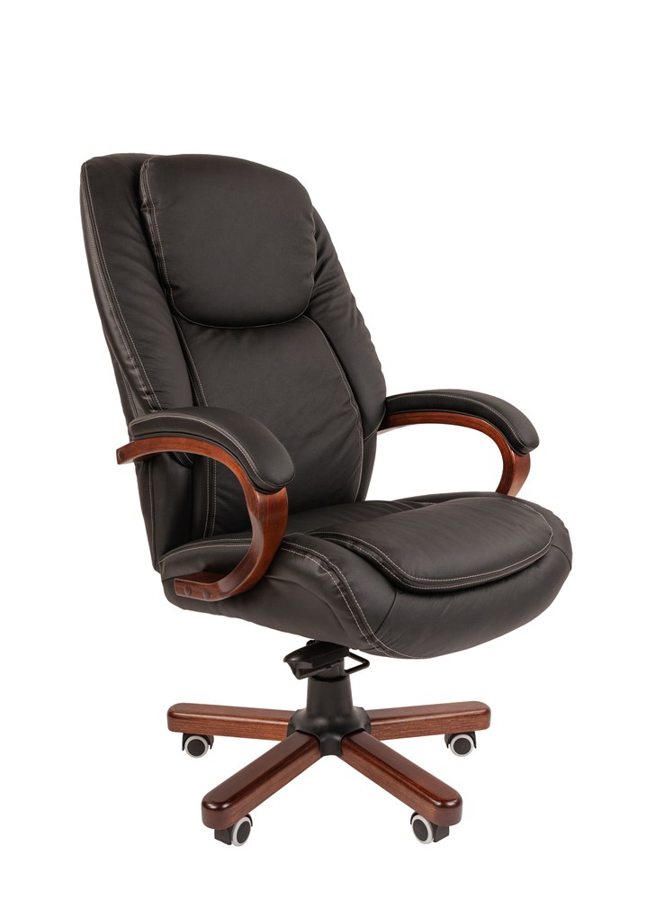 Стильное современное кресло руководителя. Эффектная светлая строчка на всех элементах гармонично дополняет благородный классический облик темного дерева, а обивка из натуральной кожи придает креслу солидность и респектабельность. Позволяет ненавязчиво подчеркнуть высокий статус своего владельца.
